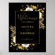 This elegant black and gold botanical floral wedding welcome sign can be personalised with your information in modern typography. Designed by Thisisnotme©