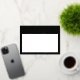 Elegant, black note card with white area for handwriting your message. At the top are customisable text "from the desk of" and your name in optional gold or silver foil.