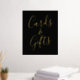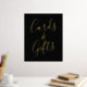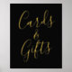 Elegant wedding sign featuring the phrase "Cards and Gifts" displayed in a gold foil script with a black background. Personalise the black and gold foil wedding sign with custom text such as your names, wedding date, thank you message, etc. The sign can also be used for other events such as bridal showers, baby showers, birthday parties, & more!