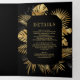 Black and Gold Foil Tropical Palm Photo Wedding Tri-Fold Invitation