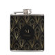 Black and Gold Geometric Pattern | Monogram Hip Flask