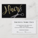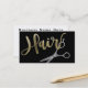 An elegant black and gold glam hairstylist appointment reminder business card. This design is perfect for Hair Stylists.