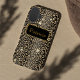 A luxury and elegant phone case with name in gold frame with black background. The design is a all over lepard gold pattern with some highlight sparkles. (product has no real sparkle or glitter). Add your name and create a personal elegant case.