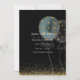 Transparent watercolor balloon wedding save the date cards in accents of black and gold with a hint of blue.