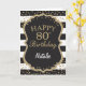 Black and Gold Glitter confetti 80th Birthday Card