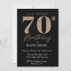 Black and Gold Glitter Swirl 70th Birthday Invitation