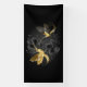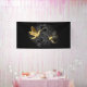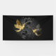 Black and gold jewellery hummingbirds on grey background decorated with plants. Jewellery birds. Golden bird. Gold bird.