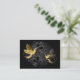 Black and gold jewellery hummingbirds on grey background decorated with plants. Jewellery birds. Golden bird. Gold bird.
