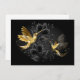 Black and gold jewellery hummingbirds on grey background decorated with plants. Jewellery birds. Golden bird. Gold bird.