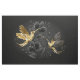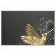 Black and gold jewellery hummingbirds on grey background decorated with plants. Jewellery birds. Golden bird. Gold bird.
