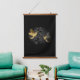 Black and gold jewellery hummingbirds on grey background decorated with plants. Jewellery birds. Golden bird. Gold bird.