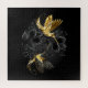 Black and gold jewellery hummingbirds on grey background decorated with plants. Jewellery birds. Golden bird. Gold bird.