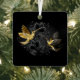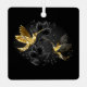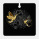 Black and gold jewellery hummingbirds on grey background decorated with plants. Jewellery birds. Golden bird. Gold bird.