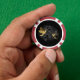 Black and gold jewellery hummingbirds on grey background decorated with plants. Jewellery birds. Golden bird. Gold bird.