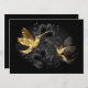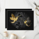 Black and gold jewellery hummingbirds on grey background decorated with plants. Jewellery birds. Golden bird. Gold bird.