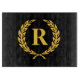 Black and Gold Laurel Wreath Monogram Cutting Board