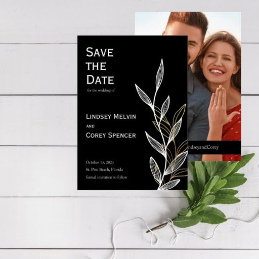 Black and Gold Leaf Wedding Save the Date Invitation