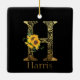 Black and Gold Letter H Sunflowers Ceramic Ornament
