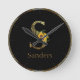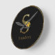 Black and Gold Letter S Sunflowers Round Clock