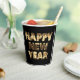 Black and Gold Look Lettering Happy New Year, New Year's Eve, New Year's Party Paper Cups, choose with or without lid