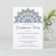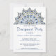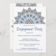 Stylish blue and gold mandala engagement party invitation.
