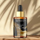 This dropper bottle product label features a faux black and gold marbled background with black text. This label measures 2.375 inches long by 1.25 inches high (60 mm long by 38 mm in height) and is a great choice when you are looking to package essential oils, fragrance oils, face serums, hair serums, and other products in standard 1 ounce or 2 ounce glass dropper bottles.