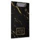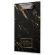 Coordinates with the Black and Gold Marble Designer Business Card Template by 1201AM. Your name or business name is elegantly displayed over a black and faux gold background for a very chic aesthetic on this personalised clipboard. Art and design © 1201AM Design Studio