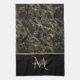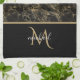 Black and Gold Marble Monogram Elegant Luxury Tea Towel