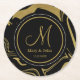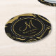 Black And Gold Marble Pattern Wedding Monogram Round Paper Coaster