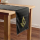 Adorn your tables with personalised classy black and gold masonic table runners. If you're on the hunt for elegant masonic table decorations, these square and compass table runners are an affordable alternative from a freemason tablecloth. Easily switch out the colour of the quality fabric, as well as the square and compass freemasonry symbol. There are black, silver and white selections (available on your desktop computer view), making coordinating your masonic party theme a breeze! Make your guest tables at the Annual Installation of Officers and other lodge special celebrations look fabulous. Category: custom masonic party supplies and personalised masonic party decorations. Colours: black and gold.