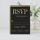 Modern and elegant black and golden RSVP card. Golden Minimalist Stripe. This card can be easily edited with your personal text.