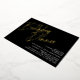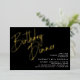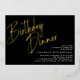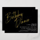 Elegant adult birthday invitations featuring "birthday dinner" text in real foil. Modern off-centre design with event details in the lower right corner. Contrasting white text on a black background with gold accents.