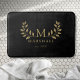 Black And Gold Modern Floral Monogram Family Name Bath Mat