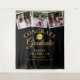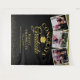 An elegant graduation photo booth backdrop featuring your grad's 3 special photos, name and graduation details set in chic typography on a black and gold glitter background. Designed by Thisisnotme©