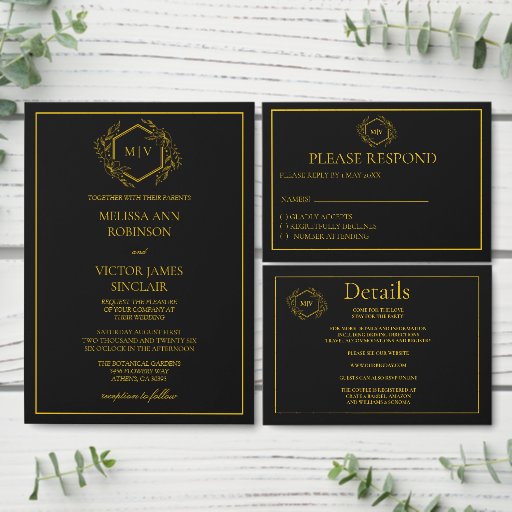 Black and Gold Monogram Wedding Invitation