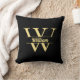 Black and Gold Monogram | Elegant Initial Script Throw Pillow