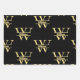 Black and Gold Monogram | Elegant Initial Script Wrapping Paper Sheets
