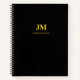 Monogram black and faux gold spiral notebook with personalised initials and name. Take meeting notes, add creative ideas, or write down goals.