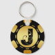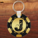 BLACK AND GOLD MONOGRAM LETTER J POKER CHIP KEY RING