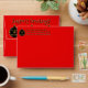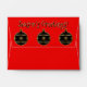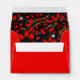 Beautiful custom-made vibrant bright red envelope features your return address adorned w/ black & gold Christmas ornaments. on front & back flap, a personalised caption on back (defaults to "Season's Greetings") and lined w/a gorgeous matching red poinsettia & white stars pattern on black.