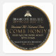 Apiary name reflection may be deleted if desired. Square black label with "COMB HONEY" written in a chiseled metallic gold font.