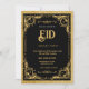 An Eid dinner invitation featuring a black and gold ornate frame The card is easy to customise with your wording, font, font colour, paper shape options, and choice of paper types. The colourful palette of the design looks stunning on the front while the dark pink contrasting backside makes this eid party invitation truly unique.