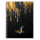 Black and Gold Paint Dripping Monogram Script Name Notebook