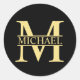 Black and Gold Personalised Monogram and Name Classic Round Sticker