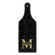featuring personalised monogram in gold classic serif font style with box of name in the middle of monogram on black background.