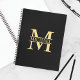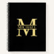 featuring personalised monogram in gold classic serif font style with box of name in the middle of monogram on black background.