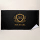 Black and Gold Personalised Stylish Monogram Name Beach Towel