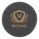 Black and Gold Personalised Stylish Monogram Name Hockey Puck