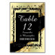 Traditional chic elegant modern sleek masculine black and gold personalised table number with musical notes surround, on black background and swirly ribbon , personalise with your text to the templates for your special occasions or celebrations. Visit the PERSONALIZED _WEDDINGS STORE for matching products. PLEASE NOTE THE golden colour is not metallic.