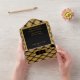 A very beautiful and elegant black and gold plaid pattern wedding invitation.
